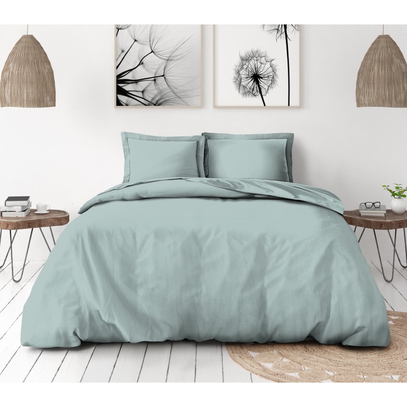 - Parure unie en  recto verso dans 7 couleurs : Gris Anthracite / Gris clair / Bleu indigo / Vert d'eau / Vieux Rose / Beige ivoire / Bleu Maya